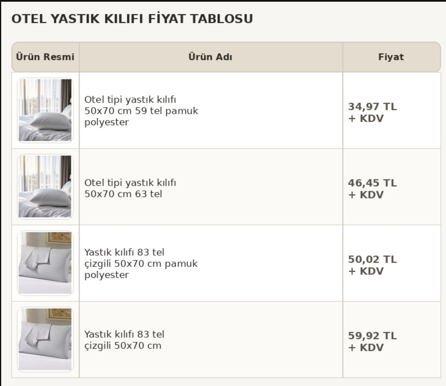Otel yastık kılıfı fiyatları; kumaş türü, dokuma kalitesi, ölçü ve üretim özelliklerine göre değişiklik gösterebilir. Yoğun kullanıma uygun olarak üretilen otel tipi yastık kılıfı modelleri, işletmeler için hem ekonomik hem de uzun ömürlü bir çözüm sunar.